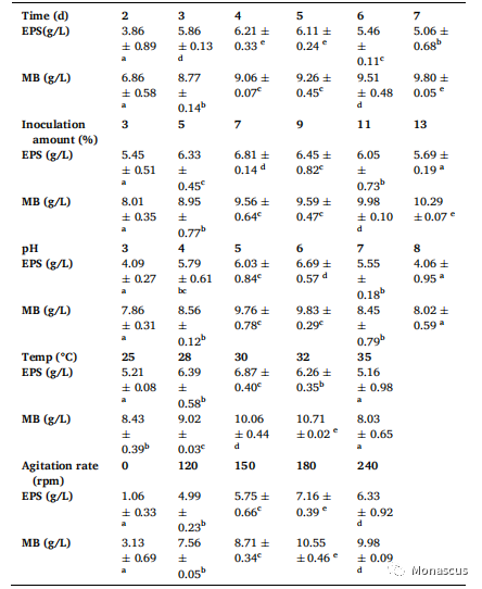 2、培養(yǎng)條件對(duì)EPS產(chǎn)量的影響